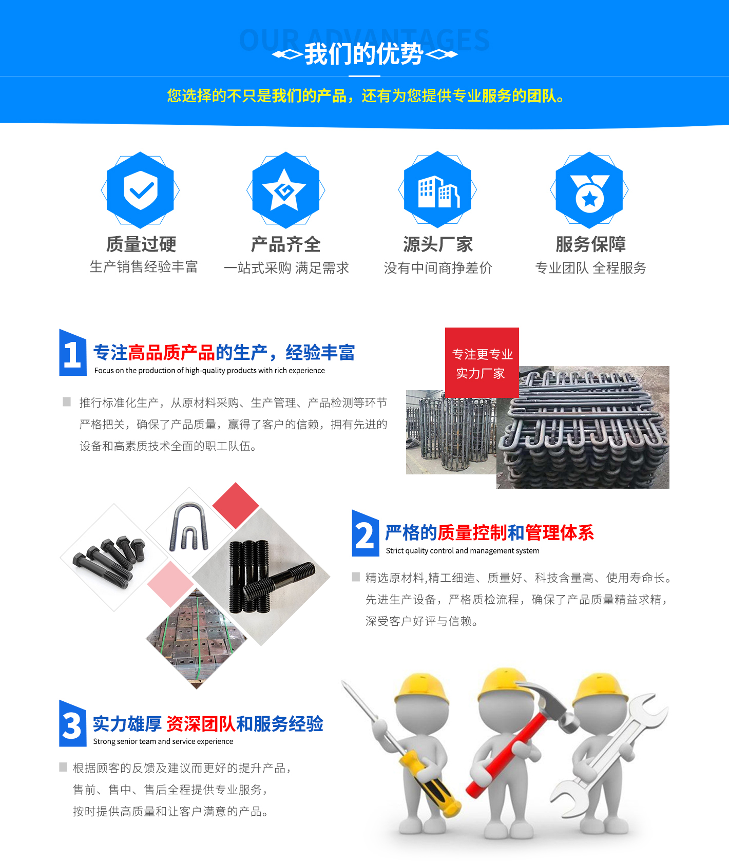 我們擁有緊固件研發、生產、銷售、服務于一體的發展歷程,積累了豐富的緊固件制造經驗,造就了一批從事緊固件設計制造的工程技術人員和經驗豐富的一線技術人員。